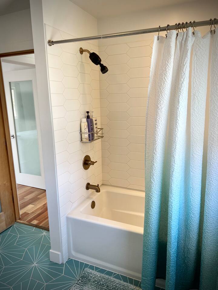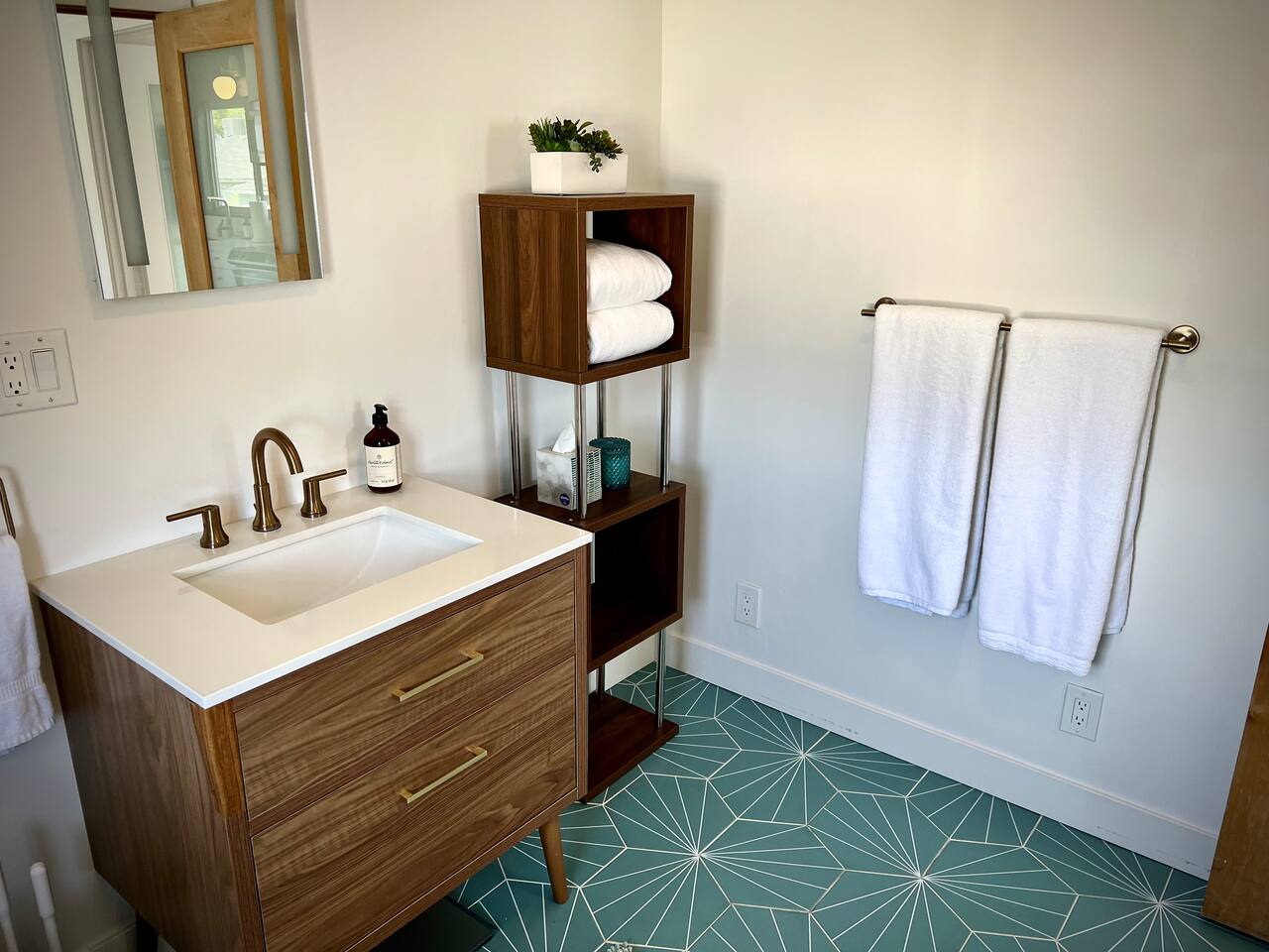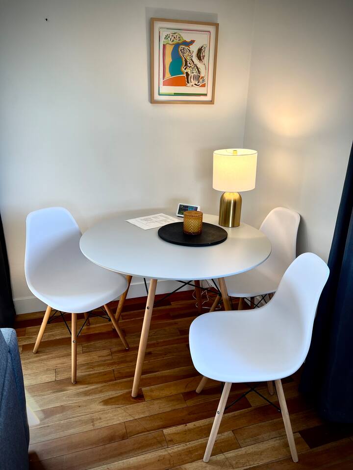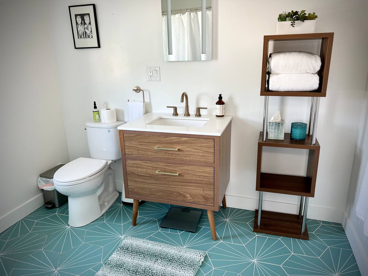 Includes one safe, off-street parking space, high-speed WiFi, a living room with dining area, 55" Smart TV, full kitchen w/dishwasher, oven/stove and combo washer/dryer, Alexa voice assistant/speaker, comfy queen size bed, full-size modern bathtub/shower, and a fold-out sofabed for an additional guest if needed.
