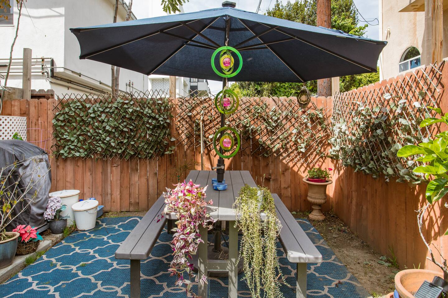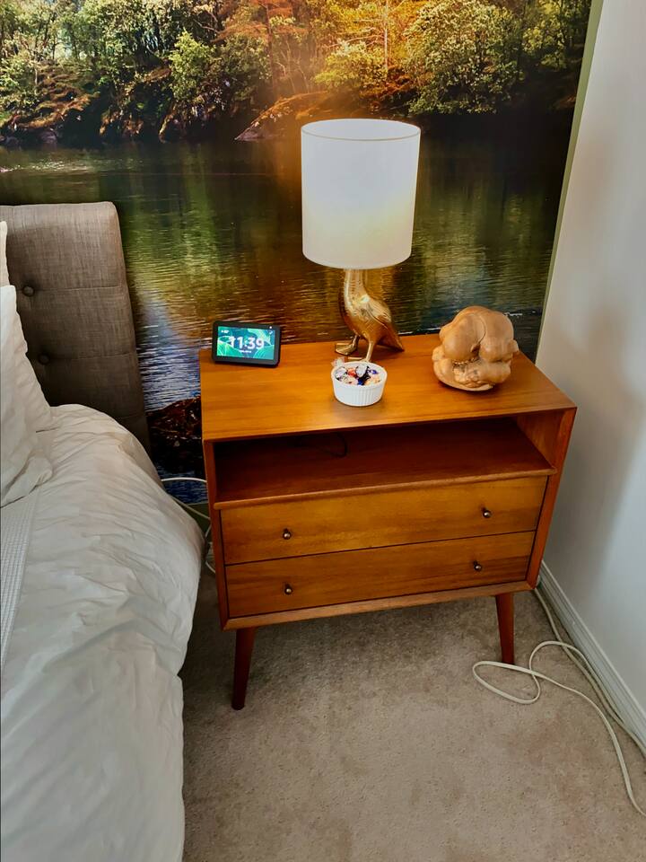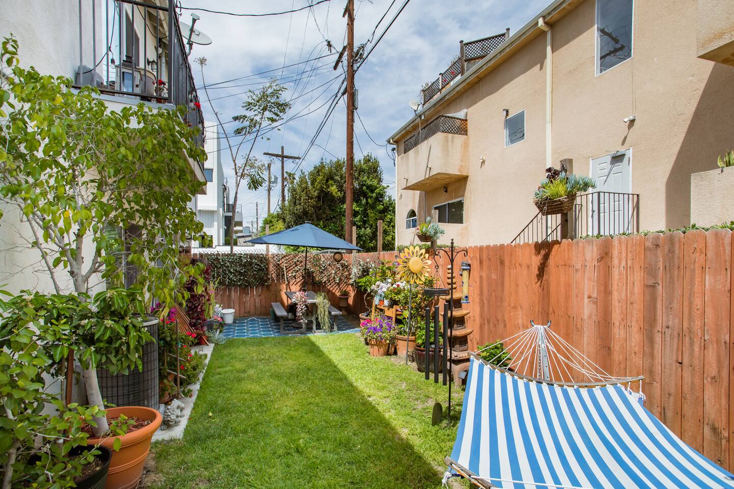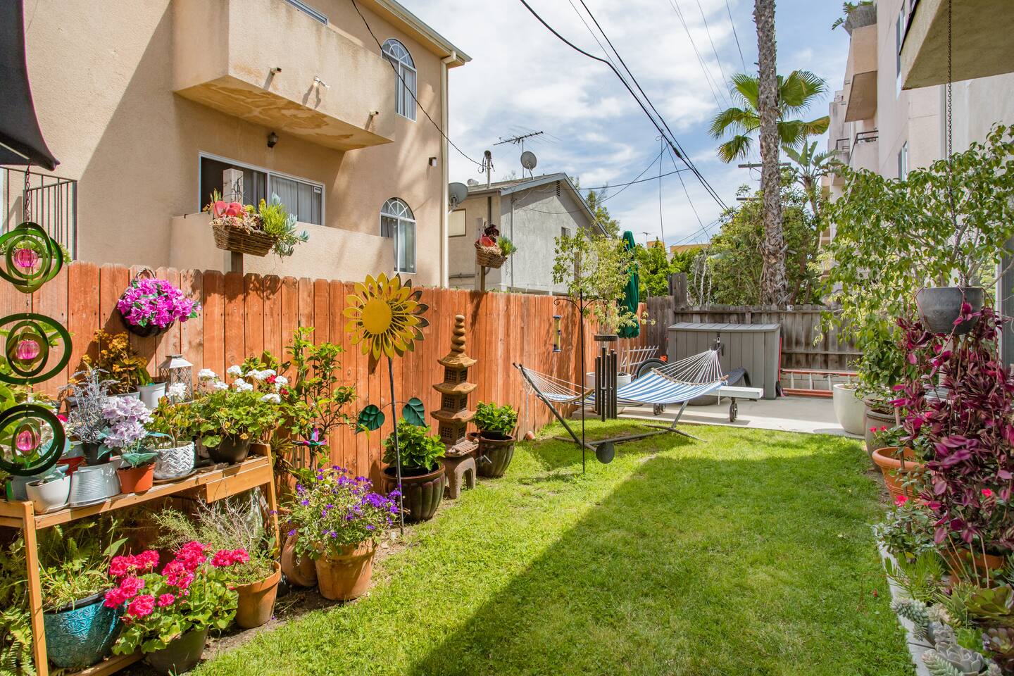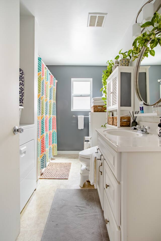 There is an automatic discount based on the number of days booked -- additional discounts are not available. If you have a question that's not answered below, feel free to message me. This is a private bedroom with a shared bathroom in a ground-floor duplex. You may be sharing the entire home with just me, or you may have the home to yourself, depending on my travel schedule (I won't know in advance). Either way, I'll always be available via phone/text during your stay, to help you with anything you may need. There are no time restrictions or curfew - you may come and go as you please. BEDROOM INCLUDES: - Queen-size bed with Tuft & Needle mattress - LCD TV with Apple TV+/HBO/Showtime/Netflix/Hulu/Amazon Prime - Echo Spot in room for music/alarms/news/general Info - Workspace w/chair - Wardrobe w/drawers - Hair dryer - 1 safe, private, gated parking space. - Garden facing view I PROVIDE: - Fresh towels and linens - Quality soap/shampoo/conditioner - Filtered and bottled water - Some snacks and breakfast items (yogurt, coffee/tea). OTHER PERKS INCLUDE: - Nespresso and Keurig with free coffee and tea - Central air and heat - Super-fast (200Mbps+) WiFi - Pro NordicTrack Treadmill w/32" screen - 2-person Far-Infrared Sauna - Iron and washer/dryer in the unit - Eco-friendly cleaning products WHAT GUESTS LOVE MOST - Central location - free parking - washer/dryer - fast WiFi - treadmill and sauna WHAT TO CONSIDER - Bathroom is shared (but clean, spacious, and well-equipped) - To minimize noise, I ask that you not use the kitchen or living room between midnight-8am. If you're tired of traveling, take a night off -- order delivery from one of the hundreds of nearby restaurants and relax with free Netflix/HBO/Showtime/Hulu. Sip your morning coffee in the garden picnic area, surrounded by butterflies, birds, and squirrels as you plan your day. Home is safe and high-tech with voice-controlled lighting and music, and a digital front door lock (no key to lose!).