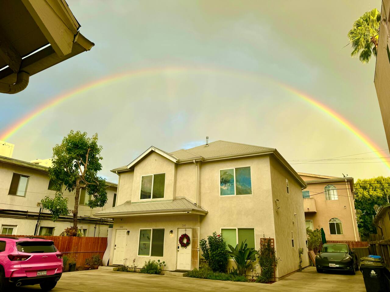 Clean, bright bedroom in my shared home on the ground floor with your own private/gated parking space. Comfy queen bed, washer/dryer in unit, weekly maid service, bottled water, central AC, super-fast WiFi, free Keurig and Nespresso coffee & walk to all of Hollywood. You are welcome to take advantage of the high-end treadmill and infrared sauna. Tesla Model Y available to rent for $125/day and waiting for you when you arrive - message me if interested.